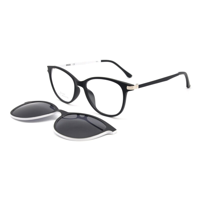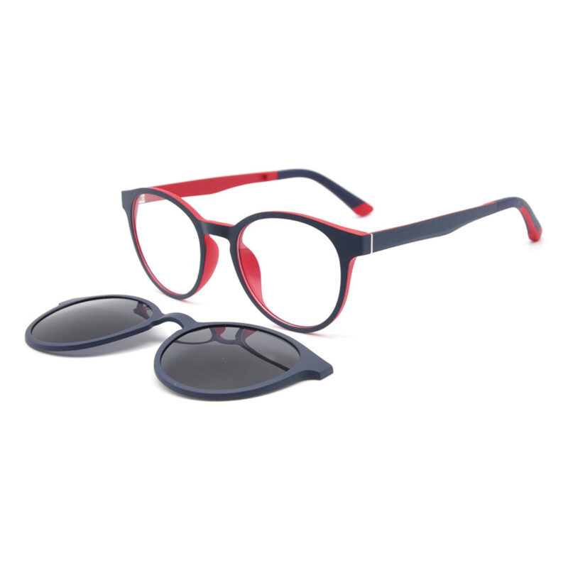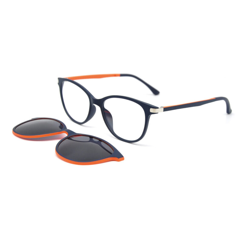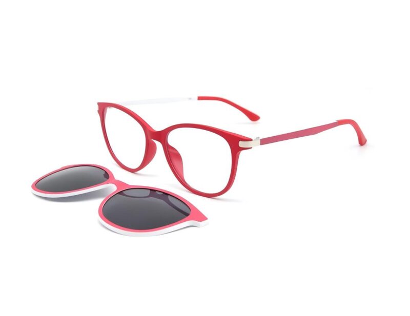 Young, female, very light, full frame with assorted color clip on and polarized lenses