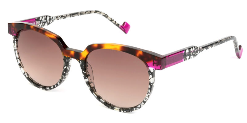 Trendy, feminine, multicolored, acetate sunglasses with top quality colored lenses