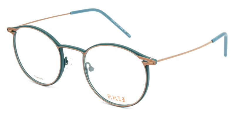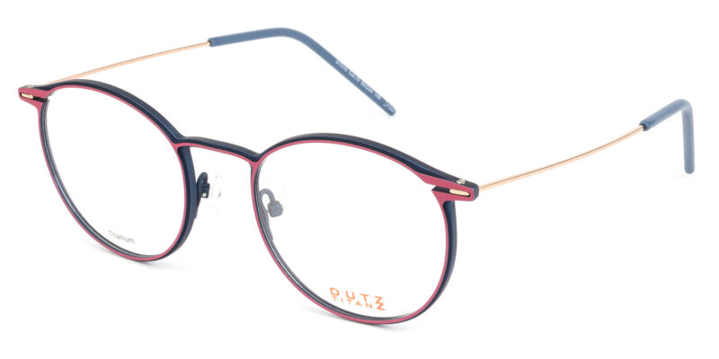 Unisex colored titanium full frame with gold toned temples and acetate temple tips. Extremely light and slim