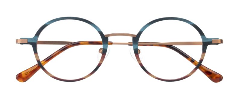 Unisex, multicolored metallic frame, combined with assorted solid color metallic temples. Matching color acetate temple tips