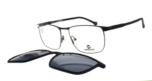 Men’s metallic frame, with ultem temples and assorted color ultem clip on with polarized lenses