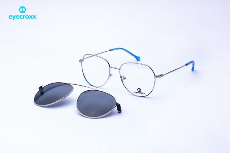 Unisex, metallic frame & temples with polarized lenses metallic clip on