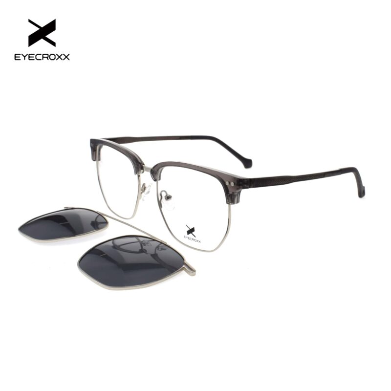 Masculine acetate frame combined with metal and metallic clip on with polarized lenses