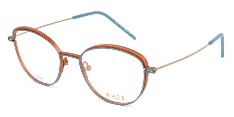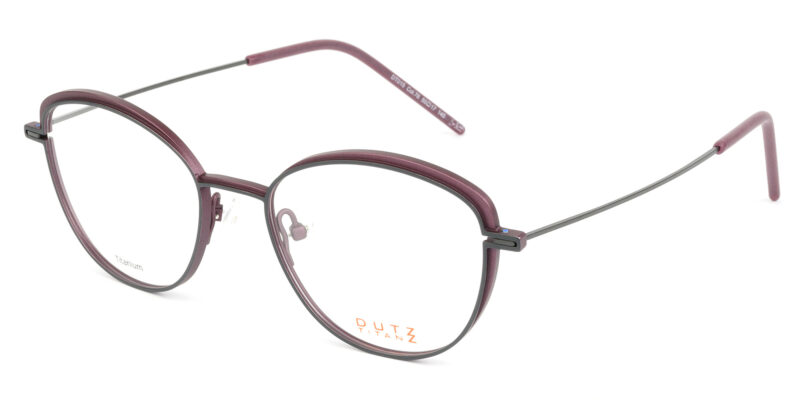 Ladies bi-color titanium full frame with contrast color temples and acetate temple tips. Extremely light and slim