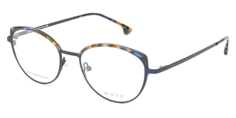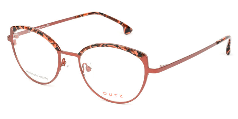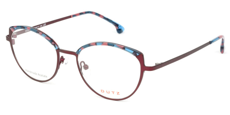 Feminine, colored metallic frame and temples, combined with contrast multicolor acetate details