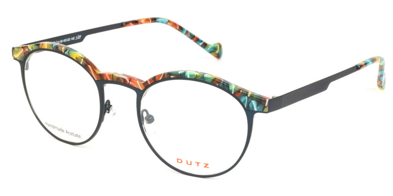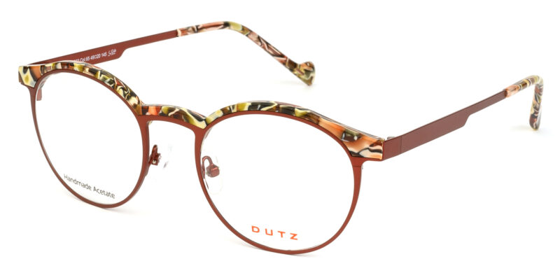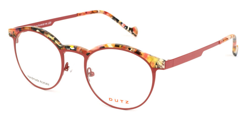 Lady’s colored metallic frame and temples, combined with matching multicolor acetate details