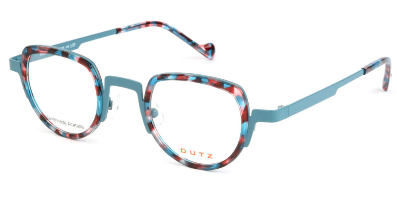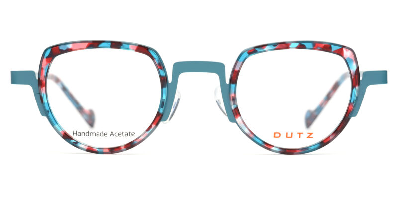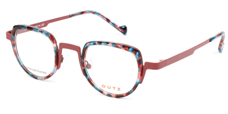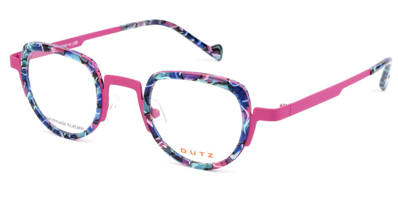 Feminine, colored metallic reading frame and temples, combined with matching multicolor acetate details