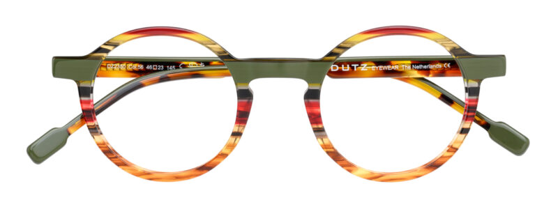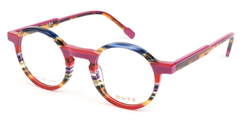 Unisex, trendy, bright colored acetate frame, with matching color temples