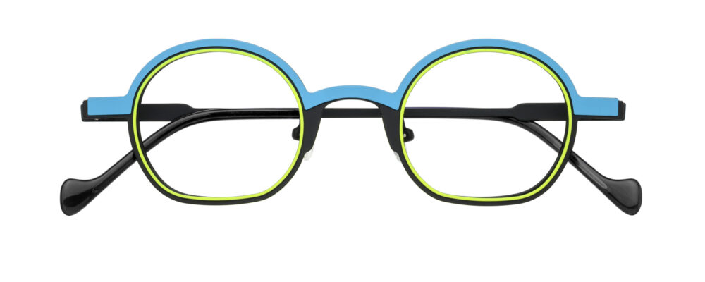 Unisex, trendy, tri-color metallic frame and temples, with matching color acetate temple tips