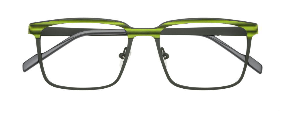 Men’s bi-color metallic frame and temples with assorted color acetate temple tips