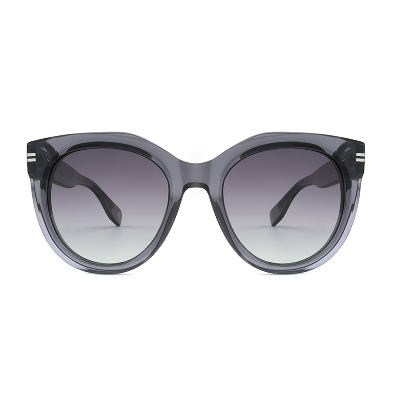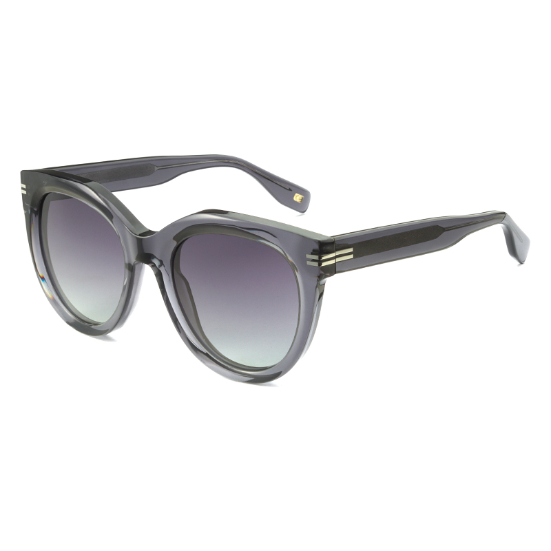 Oversized, elegant, ladies’ sun glasses with metallic silver detail and colored polarized lenses