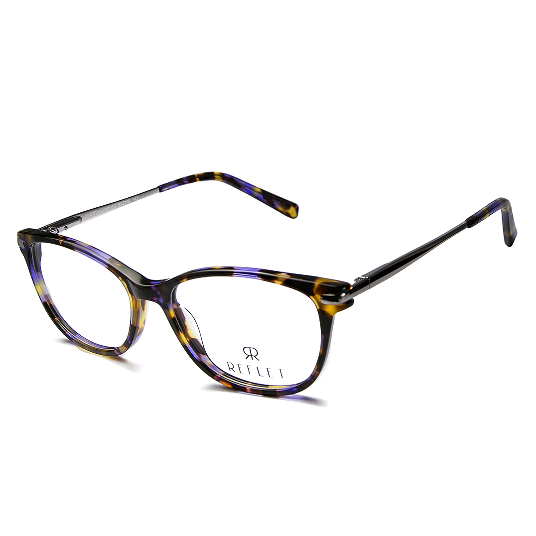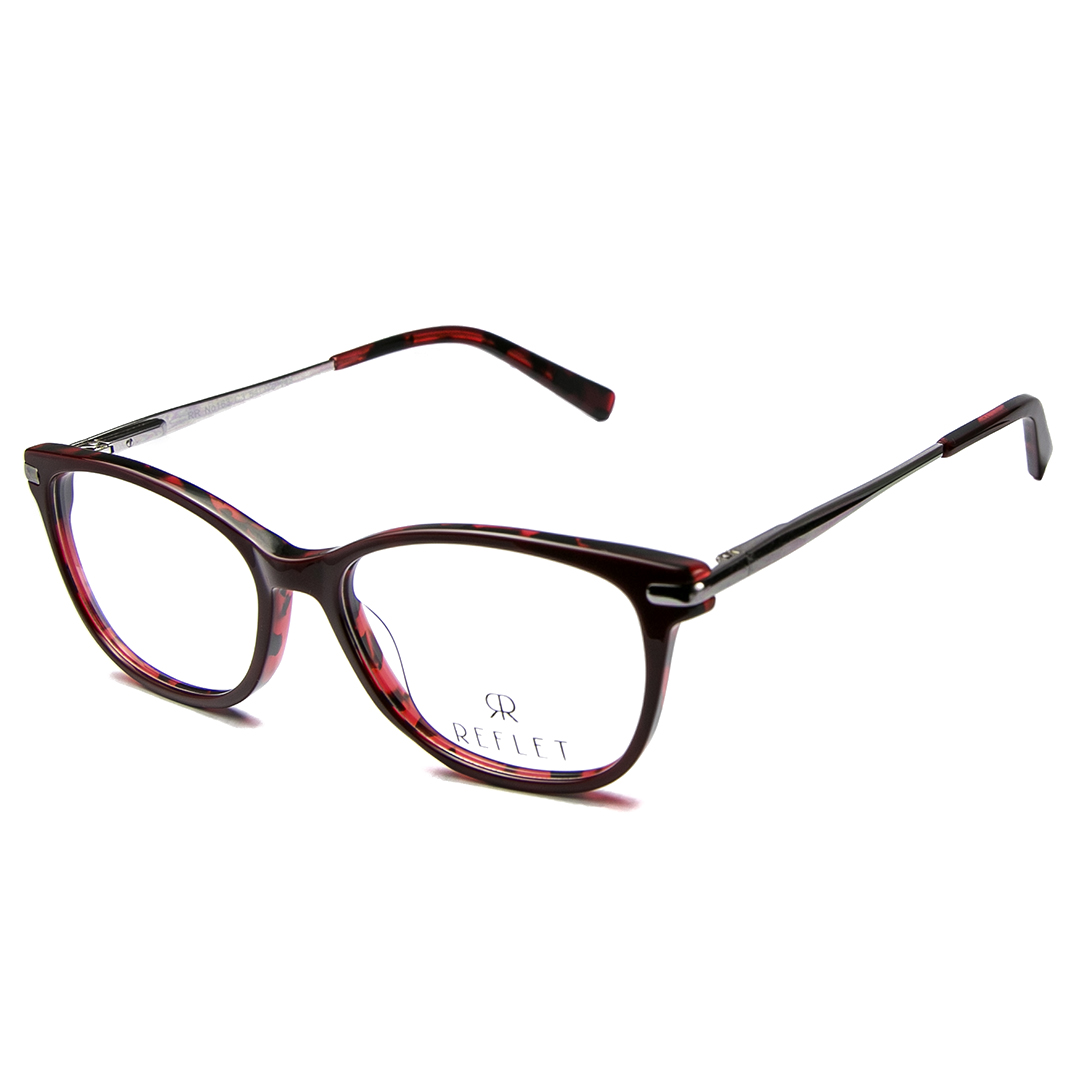 A slim, elegant lady’s, acetate full frame with slim metallic temples and acetate tips