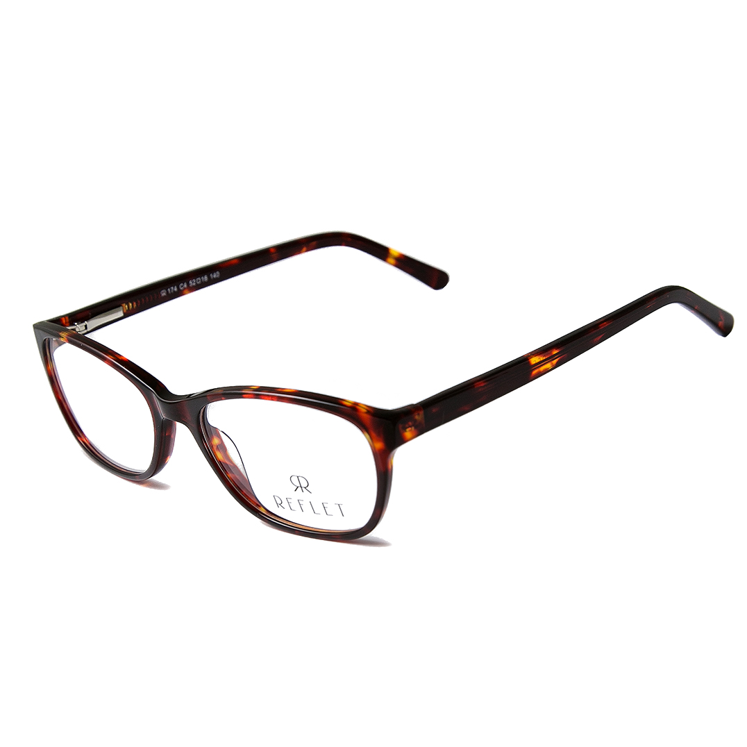 Slim, lady’s acetate frame and matching color temples with flex hinge